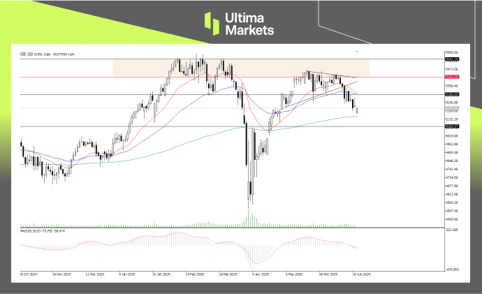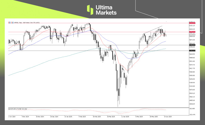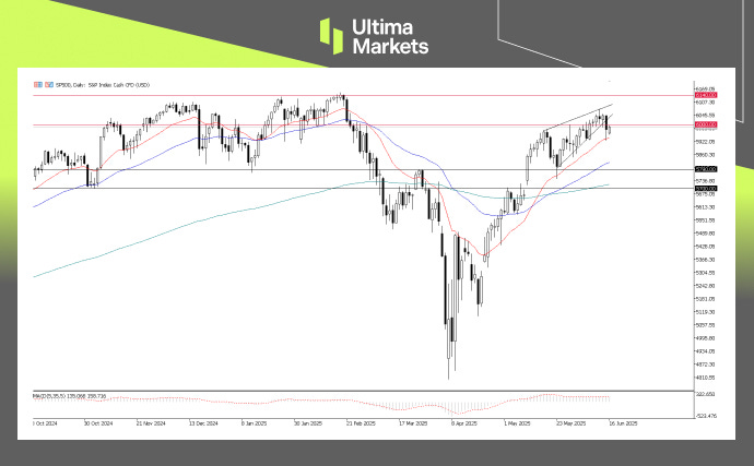Global equity markets faced broad selling pressure last Friday, leading to declines across major indices. However, despite escalating geopolitical tensions over the weekend, Asian markets opened higher on Monday, and futures in Europe and the U.S. also edged up. Still, investor sentiment remains fragile. With several key central bank decisions on the horizon and ongoing geopolitical uncertainty, market nerves could resurface quickly. Any sudden shift in risk appetite or policy tone may trigger renewed volatility across global markets.- Technical Outlook: S&P 500 As highlighted earlier, the S&P 500’s bullish momentum has started to wane. A rising wedge pattern had formed near the critical 6000 level—often a bearish reversal signal.
