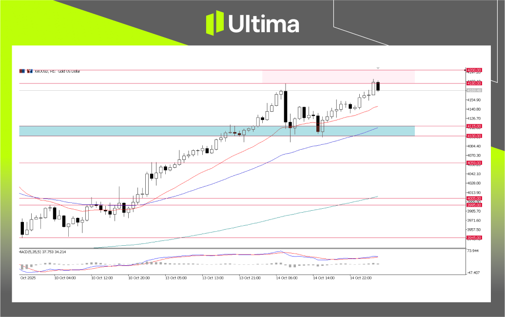 Market sentiment started the week cautiously, driven by the dual impact of escalating US-China trade tensions and the ongoing US government shutdown. Last Friday, the Trump administration announced plans to impose a 100% tariff on Chinese imports, effective November 1st, escalating the trade dispute between the two largest economies. Beijing criticized the move and warned it would take “corresponding measures” to safeguard its interests. This trade friction dampened risk sentiment and boosted demand for safe-haven assets like gold.