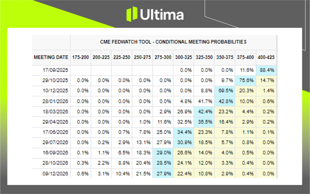 Despite this, the market still prices another 25 basis point rate cut in October, but the probability has fallen to 94.1% from 99.4% a week ago . This reflects the delayed release of recent employment data, which has increased uncertainty about the policy outlook.