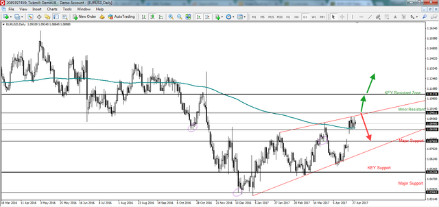 On the other hand French Election outcome could make Draghi to change his policy for a while as EU friendly Macron won the first round and market guessing he will lead the second round too. So, a break below 1.08508 ( low of Oct 25,2016) would open door for EURUSD to go downward till the next major support 1.0653 ( high of Dec30, 2016)