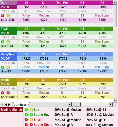 I have developed a trading system for World leading Indices. I request the people and expert to have a look at this. The System is Based on three trendlines. 1) Median 2) R1 3) S1. Other lines are informative.