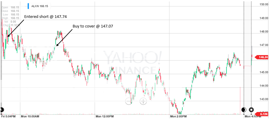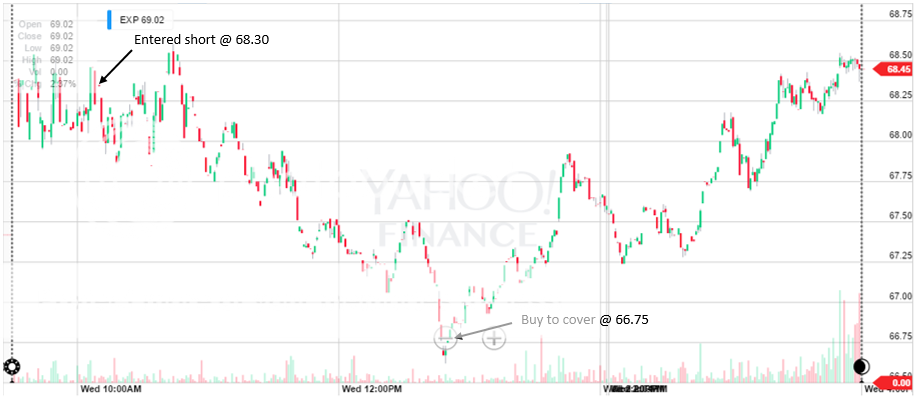 It was not by accident that this was done. If you take a look at the screener results, it is showing that 11 of the 15 previous days the 1% target profit was hit (~$0.70), and 5 of the 15 times the 1.5% (~$1.05) target was hit. Only 2 of the 15 previous days hit 1% up. There were a few days with a substantial downside and one with a large upside which skewed the ATR. So although the average range of the stock is quite large relative to the stops I set, the immediate trend is showing that the range is significantly skewed to the downside. I expect this will be the case of most of the trades in this system and is something I will keep in mind if I need to rework it.