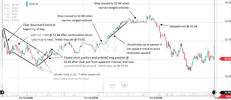 I do not disagree with your statement that a hard profit target should not be set. In fact, if I had time to dedicate to screen watching, I would play these by setting a soft target and as the target was approaching look at the trend to make the final decision as to when to exit. Essentially I would let the trend I see continue until it is broken and then exit (provided it is not near the end of the day). This was actually how I tried to play the 1.0 version trades, but I simply can't dedicate the time required to do this while at work. This is why I have the hard targets set.