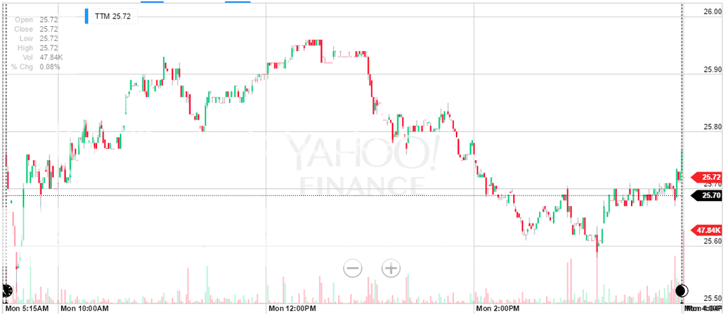 TCO is trending down and you're short (or will be at market open) so, in theory at least, probability is on your side and your profit target will be hit before the SL. However, if you look at the volatility of TCO (adding the standard 14 period ATR is as good a way as any that I know of), then you'll see that the stock could easily move almost $1.50 on the day. Current price is around $67.00 and, with a target of 1%, you're aiming for $0.67 per share traded. One thing's for sure, with an ATR at well over two times your stop loss and profit target - the probability of one or other of them being hit during the day is very high indeed. I'd happily bet on that - and heavily. As to which one gets hit first is anyone's guess!