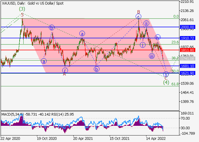 If the assumption is correct, the decrease in XAUUSD will continue to the area of 1681.1–1621.9. The level of 1811.8 is critical and stop-loss for this scenario.