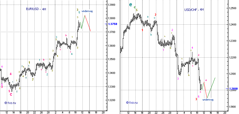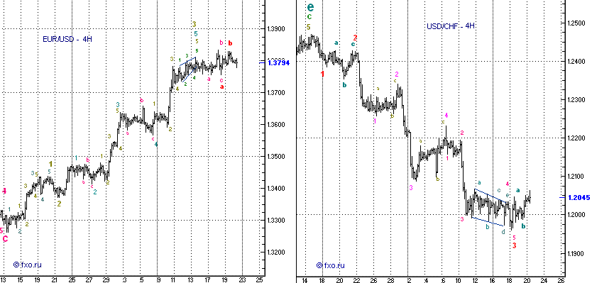 Irregular correction at eurusd has confirmed to be true. CHF though looks crookedly, but too it is possible to find out in it irregular. The euro will go above, oil, gold, cross-currencies push eurusd upward. Actually all European and not only European currencies work now against dollar. USD/MXN, USD/HUF have shown already new global bottoms.