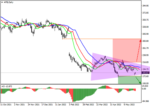 The shares of Meta Platforms Inc., which owns the world's largest social network Facebook, are trading within a downtrend around 183.