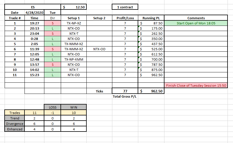 - The test is on a static ES chart (I will go bar by bar to test the day)