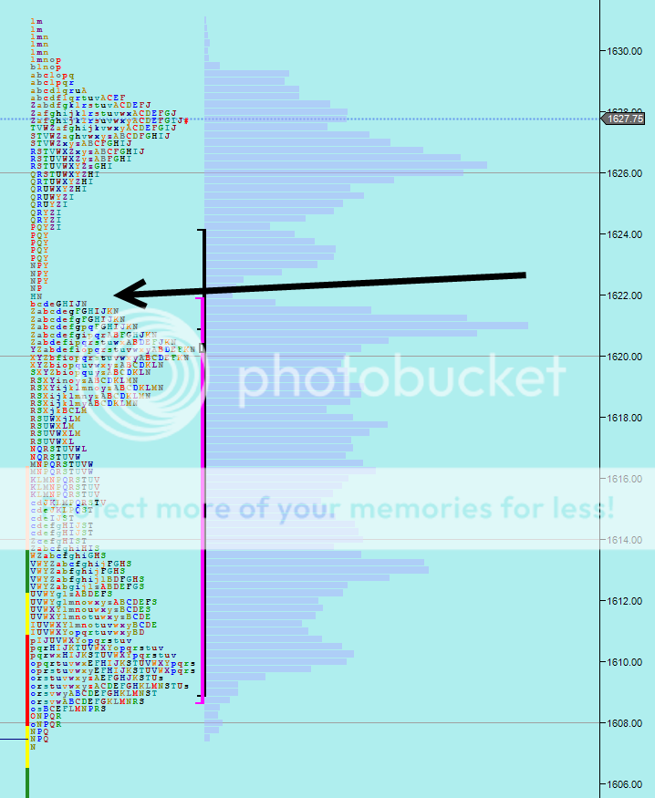 Looking at the weeks profile - we have a double distribution with the value being below this 1622->1631 level. I'd expect us to at least revisit 1622 today. We need to build value up in this top area if it's to hold.
