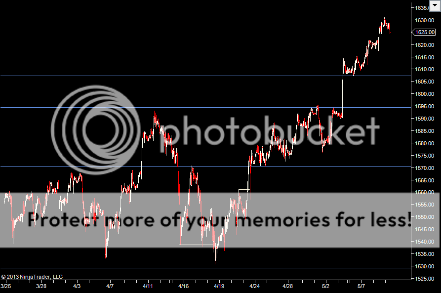 4 Consecutive up days. Lots of levels to play off above but I think 1616.75 is minor support with 1607.25 being the major line in the sand.